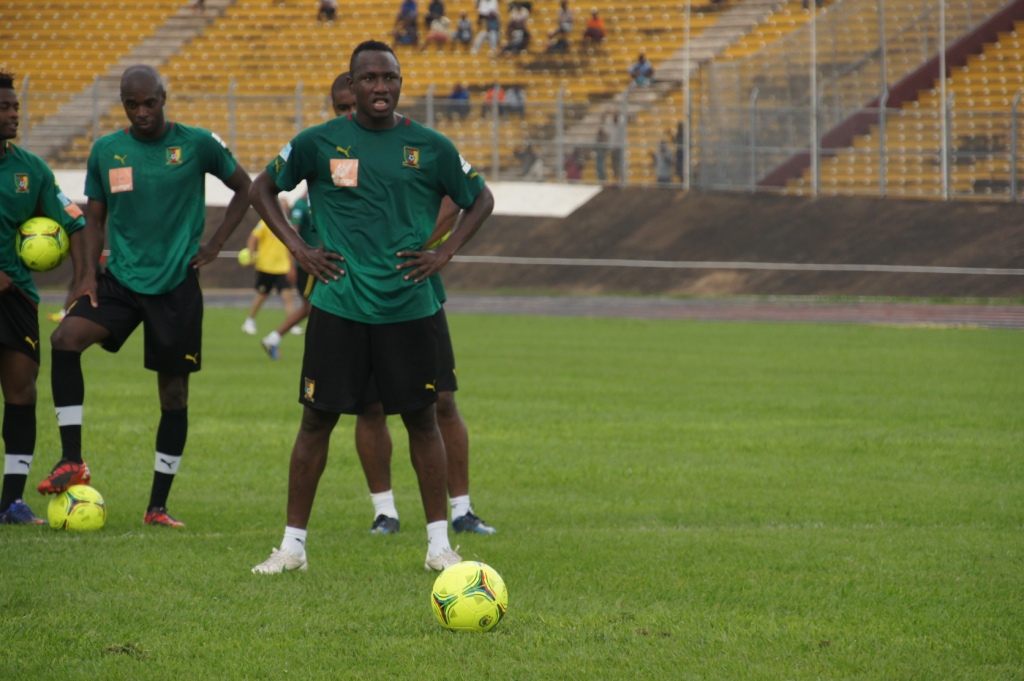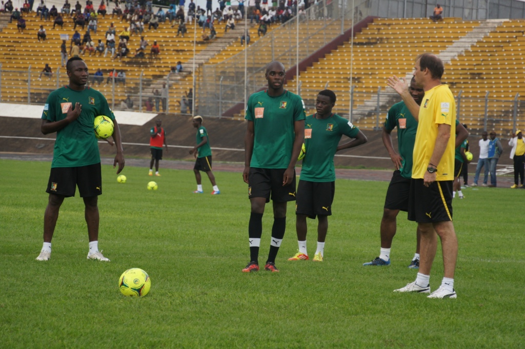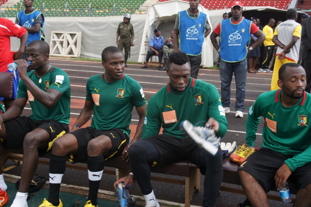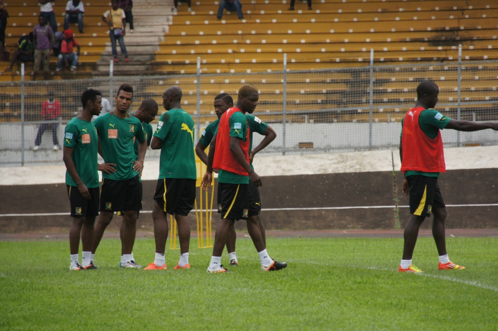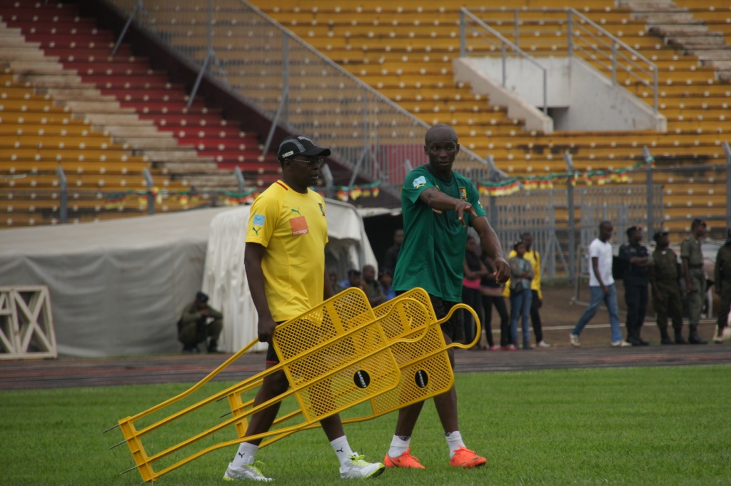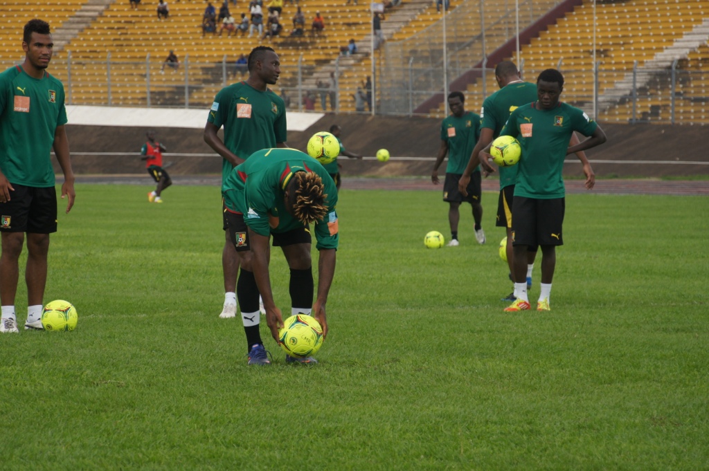 Moukandjo n’a pas achevé les entraînements avec le groupe. Après avoir trottiné en solitaire, il a pris place au côté du staff médical.