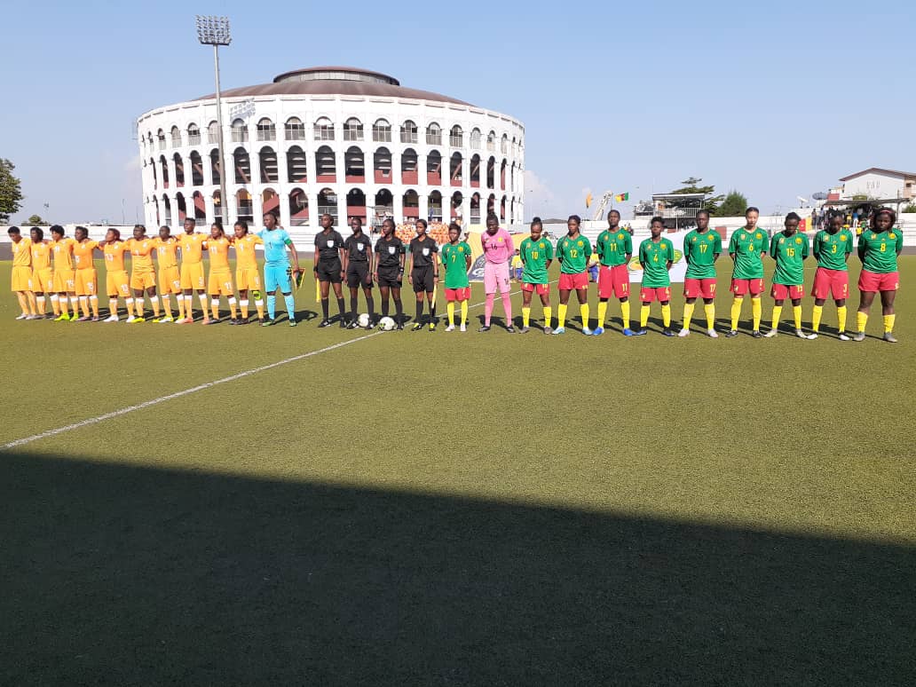 Devant son public, les Eléphantes réagissent à la 20e minute. A l’entrée de la surface, sur un coup de pied arrêté, Elloh Amon Rebecca arme une frappe mais Bawou Ange, bien sur sa ligne, repousse le ballon. Dominatrices, les filles de Touré Clémentine ne sont pas loin de trouver la faille. Bien servi en profondeur par Tia Ines, Kouassi Amenan Rosemonde se retrouve face à la gardienne. Son piquet trop fort, passe au-dessus des buts Camerounais. Malgré la frayeur de la 27e minute, les Eléphantes rejoignent les vestiaires sur ce score de 0 à 0.