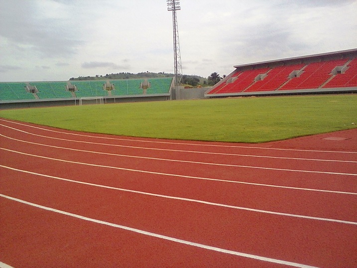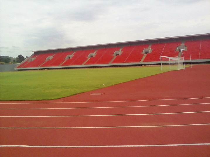 Une fois à l’intérieur, c’est une vaste étendue de surface de terrain terrassé qui se présente. Ci là et là, les morceaux de lattes, de chevrons ayant certainement servi à l’échafaudage pendant la construction du stade, sont déposés. Quelques ouvriers chinois et camerounais, y vadrouillent. Plus l’on avance, les images rappelant un champ de ruine, cède progressivement la place au stade flambant neuf. Du couloir à l’enceinte du stade proprement dit, l’on croit être dans un autre monde. A vu d’œil, l’on peut déduire que l’ouvrage a été réalisé avec rigueur. Pas fissures au mur, ni au sol. Les sièges aux couleurs du drapeau national sont minutieusement disposés sur chacun des gradins du stade. La piste d’athlétisme fraichement matérialisée, colle encore aux semelles des souliers. Sur l’aire de jeu, la verdure du gazon naturel ne séduit quelques reporters qui s’y précipitent à l’effet de se faire prendre en photo. Tout ici, dans cette enceinte, sent du neuf. L’envoyé du ministère des sports et de l’éducation physique (Minsep) qui visite l’infrastructure, ne cache pas son émerveillement. A défaut de le dévoiler par des mots, il secoue sa tête, en guise d’acquiescement. Toutefois, avant la cérémonie d’inauguration et la visite d’un émissaire de la confédération africaine de football (Caf), pour l’homologation du stade, ce qui doit encore être fait, se situe au niveau du gazon qui doit être tondu ; et la matérialisation de l’aire de jeu.