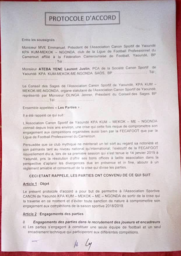 Après quelques heures de discussion, on est arrivé à un consensus qui prévoit la fusion des deux équipes qui se faisaient face, la convocation d’une assemblée générale extraordinaire dans un délais de 45 jours en vue d’aplanir toutes les divergences au sein du club.