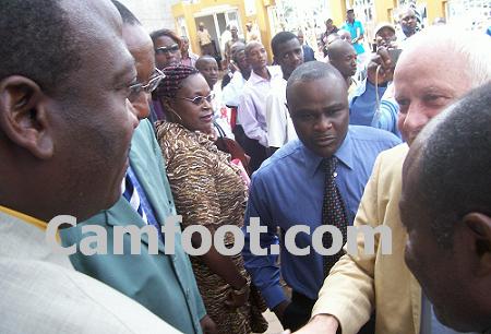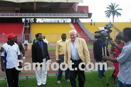 La prochaine étape de la journée de Otto sera le ministère des sports. À son arrivée dans le cabinet du ministre, le décor est planté. Tous les hauts responsables du sont présents, mais on note l’absence des responsables de la Fecafoot. Le ministre Augustin Edjoa d’entrée de jeu le rassurera :  » vous avez la confiance du ministère des sports, du gouvernement Camerounais. Les camerounais aiment beaucoup leur équipe nationale. Travaillez sans crainte pour nous donner les résultats. Vous avez notre soutien. «  La parole sera ensuite donnée a l’hôte de marque qui en profite pour marquer l’instant :  » Je sais que le football est une religion au Cameroun. Avec le potentiel que le Cameroun a, on peut faire quelque chose. Je suis un homme de terrain, 24 h sur 24 je serai au travail. (…) Je vais m’installer au Cameroun. Je suis contre les entraîneurs qui ne sont pas présents, qui jouent un match et rentrent en Europe et attendent le prochain match pour venir. (…) Je sais qu’en Afrique, il n’y a pas les moyens. J’ai toujours su travailler avec les moyens de bords et je dis la Can c’est bien, mais il y a un travail préalable à la base. Je suis prêt à me déplacer avec mon collaborateur dans les coins les plus reculés du Cameroun pour travailler. (…) Il y a beaucoup d’entraîneurs qui arrivent en Afrique avec les programmes de travail sur trois à cinq ans et à la fin ils ne font rien de tout ça. Moi je sais ce que j’ai à faire, je dois travailler à la base. «  Otto Pfister, pendant son speech, va arracher des salves d’applaudissements. L’avant dernier arrêt du périple Otto Pfister était l’immeuble siège de la Fecafoot a Tsinga. Là bas c’est Dominique Wansi, le chef du département technique et de développement qui l’accueille et le conduit dans son bureau. Après 20 minutes d’entretien à hui clos, Mr Wansi fait le résumé :  » on a eu un bref échange, mais le contact était chaleureux. Nous lui avons parlé des caractéristiques du football Camerounais vous savez que chaque pays a son expression et son football, nous avons été clair sur les rôles des uns et des autres. Il est là pour la prospection c’est-à-dire qu’il faut qu’il trouve au niveau national une stratégie nationale pour gagner. Il doit discuter avec les entraîneurs. ». Le dernier acte de son périple l’a conduit au stade omnisport Ahmadou Ahidjo de Yaounde. Il a retrouvé avec bonheur la vieille battisse récemment retouché par les japonais.  » Je me souviens de cette tribune. C’est là bas que j’ai reçu la médaille après notre victoire sur le Canon de Yaounde pour le compte de la finale de la champions league africaine «  . Le coach Allemand a décidement aimé le nouveau visage du stade :  » C’est bien maintenant; le stade est très propre. Je me souviens qu’en 2000 ça ne ressemblait a rien. C’est vraiment bien, le gazon est de bonne qualité « . Apres l’étape du stade omnisports Ahmadou Ahidjo la suite de son programme prévoyait un déplacement à la Kadji Sports Academy de Douala pour prendre contact avec les joueurs sélectionnés par Gweha Ikouam pour les lions A’.