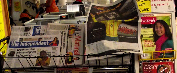 A la une de Lékip, journal sportif mauricien paru ce vendredi, on peut apercevoir une grande photo de Samuel Eto’o le capitaine des Lions indomptables avec les bras au ciel et sous son aisselle une petite photo de l’équipe nationale de l’Ile Maurice baptisée Club M. Le journal fait la part belle à la rencontre qui oppose demain au stade Anjalay de Belle Vue les Lions indomptables à la sélection Mauricienne pour le compte des éliminatoires de la coupe d’Afrique des nations 2012. De l’avis de tous les spécialistes qui ont pris la parole dans les colonnes du journal, les Lions indomptables vont gagner sans avoir besoin de forcer leur talent.