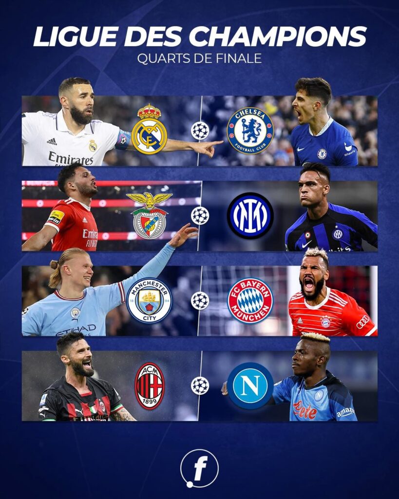 C’est le gros choc de ces quarts de finale. Un géant d’Europe ne gagnera pas l’édition de 2023. La course du Bayern Munich ou celle de Manchester City devra s’arrêter dès la phase des quarts de finale. Difficile de dire qui sera le vainqueur de cette rencontre. Les deux équipes ont un potentiel tant offensif que défensif impressionnant. Rendez-vous donc les 11/12 avril pour la phase aller et les 18/19 avril pour la phase retour.