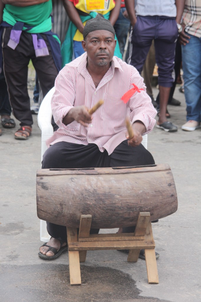 La cérémonie d’accueil de la dépouille d’Ebosse a démarré par un rituel traditionnel sous la houlette d’un chef traditionnel. Comme de tradition, il a accueilli la dépouille avant qu’elle ne franchisse le lieu prévu pour les hommages. Pendant moins d’une dizaine de minutes, le garant des traditions rythmé par des tambours s’est rapproché du cercueil et a prononcé quelques paroles en langue Bassa, la langue du défunt, question de souhaiter la bienvenue au pays natal.