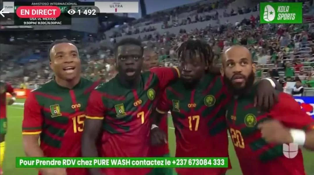 Les Lions vont ouvrir le score à la 37e minute, grâce au premier but en sélection de Bryan Mbeumo. Mais les hommes de Rigobert Song vont se faire rattraper au score peu avant la mi temps (45+2′) sur un but de Reyes. Au retour des vestiaires, le coach mexicain remplace son gardien. Le nouvel entrant va se trouer sur un centre d’Omar Gonzalez et va permettre à Toko Ekambi de redonner l’avantage aux Lions indomptables (61′).