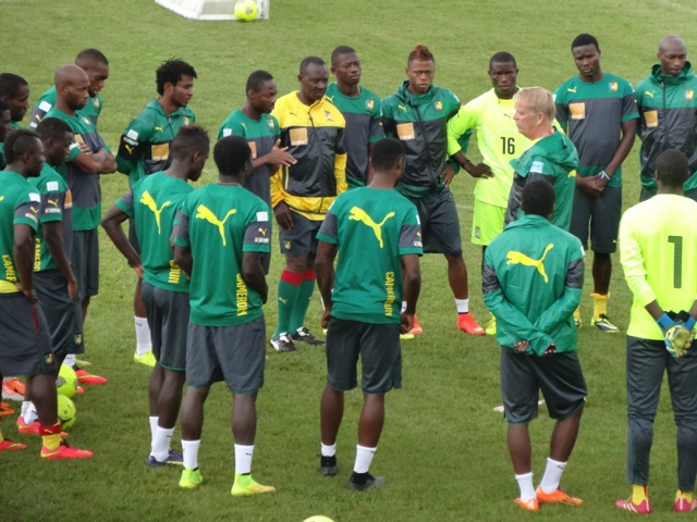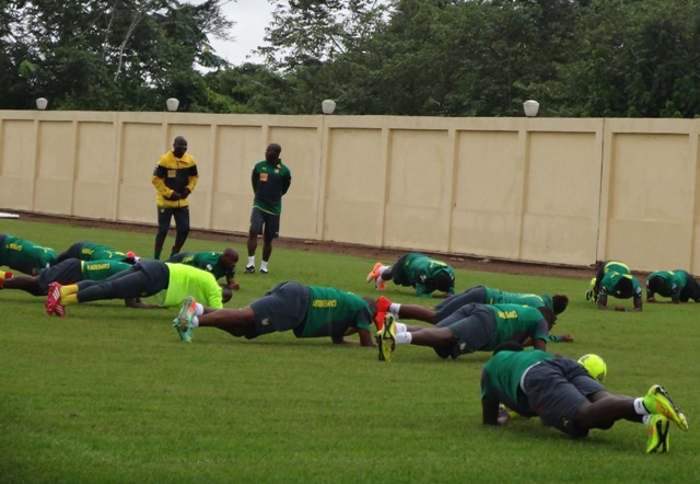 Les hommes de Volker Finke ont retrouvé le gazon naturel ce lundi après-midi sous le ciel du Centre d’Excellence de la Confédération africaine de football (CAF) de Mbankomo, deux jours après leur victoire en RD Congo (0-2) lors de la première journée des éliminatoires de la CAN2015.