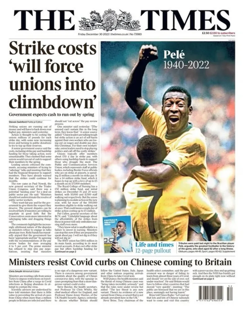 Les adieux au roi Pelé ont fait la une des médias du monde entier. Cela ne s’est pas simplement limité au domaine du sport. Des finances à l’économie, de la politique à la culture, son décès a monopolisé tous les débats de ce jeudi. Chaque rédaction a rendu à son image, et selon ce qu’elle retient du personnage, un hommage à Pelé.