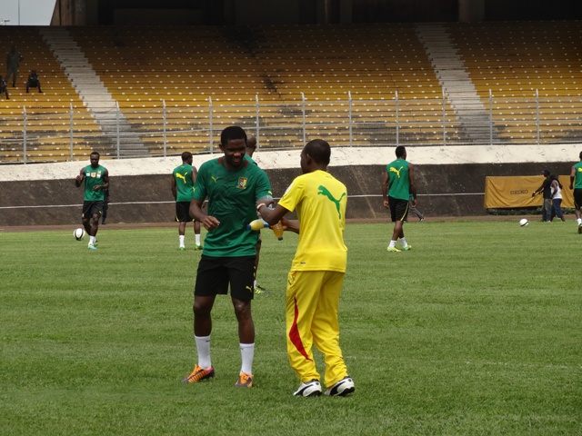 Les Lions Indomptables du Cameroun se sont exercés pour la dernière fois ce samedi avant de rencontrer en match couperet ce dimanche les Aigles de Carthage dans une ambiance détendue. Les Lions savent qu’ils ont leur destin en main et comptent bien saisir cette opportunité unique. Devant le public de Mfandena, Samuel Eto’o Fils et ses coéquipiers vont mouiller le maillot national.