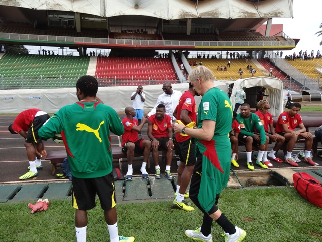 Les Lions Indomptables du Cameroun se sont entraînés ce vendredi après-midi au Stade Omnisports Ahmadou Ahidjo de Yaoundé en cette quatrième journée du stage. Conscients de l’enjeu, les Lions semblaient détendus à leur descente de l’autobus. Voici les premières images de vendredi
