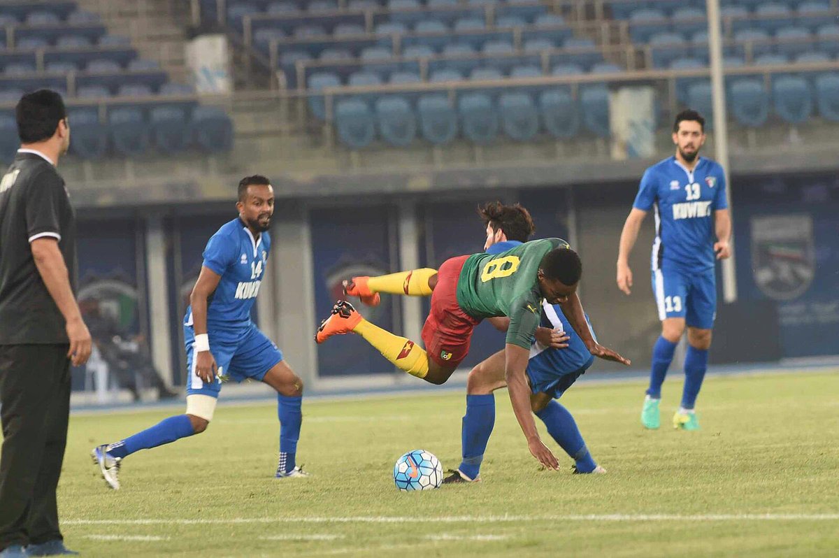 Stéphane Bahoken, fils de l’ancien Lion Indomptable Paul Bahoken qui a contribué aux succès des Lions Indomptables notamment en participant à la Coupe du Monde 1982 et aux Jeux Olympiques de Los Angeles de 1984, a livré son premier match en Lions Indomptables ce dimanche à Koweït City. Le match s’est déroulé dans un stade avec des supporters du Cameroun qui se sont déplacés en grand nombre. Le match… en images.