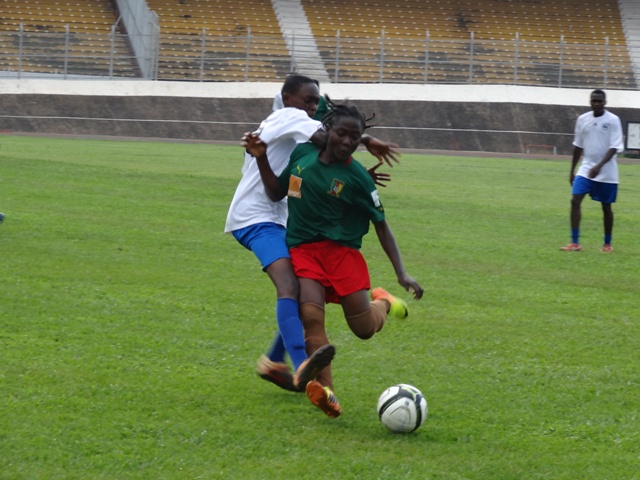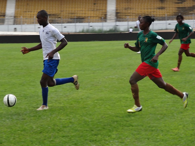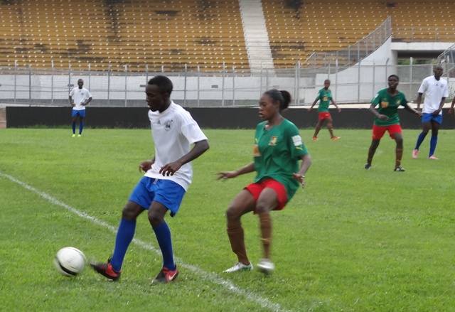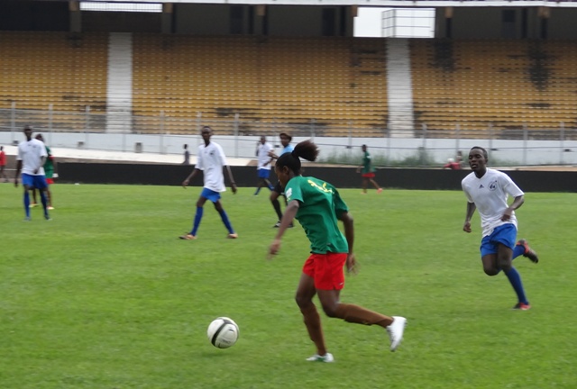Siliki Edjangue, la défenseure latérale droite, sait le bien fondé d’un tel match : « Jouer contre une équipe de garçons nous permet de gagner en endurance. Ça nous permet de travailler en vivacité, en vitesse, parce que les hommes sont plus vifs que nous. C’est la raison pour laquelle le coach nous fait disputer des matchs contre des garçons plus âgés que nous. Ce genre de match nous aide énormément ».