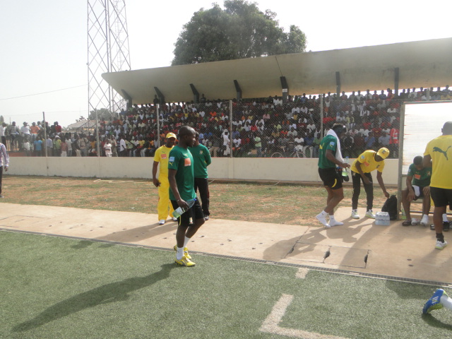 Lors de la mise en place tactique qui a suivi l’échauffement dirigé par Philippe Manouvrier, on a observé que d’un côté on avait disposé dans les buts Guy Rolland Ndy Assembe, en défense centrale Nicolas Nkoulou et Aurélien Chedjou. Henri Bedimo était positionné en latéral gauche tandis qu’Allan Nyom occupait le flanc droit de la défense. Joel Matip, tenait le rôle de vigie devant la défense, tandis que Landry Nguemo et Alexandre Song était chargé d’assurer la transmission vars une ligne d’attaque composée de Choupo Moting à gauche, Jacques Zoua à droite et Aboubakar Vincent en avant-centre.