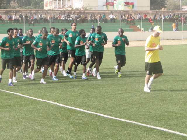 Ce mardi 28 février 2012, l’unique séance d’entraînement des Lions Indomptables avant d’affronter demain au stade Lino Correia de Bissau a laissé entrevoir l’allure de la formation que pourrait aligner Denis Lavagne pour son premier match officiel comme sélectionneur du Cameroun.