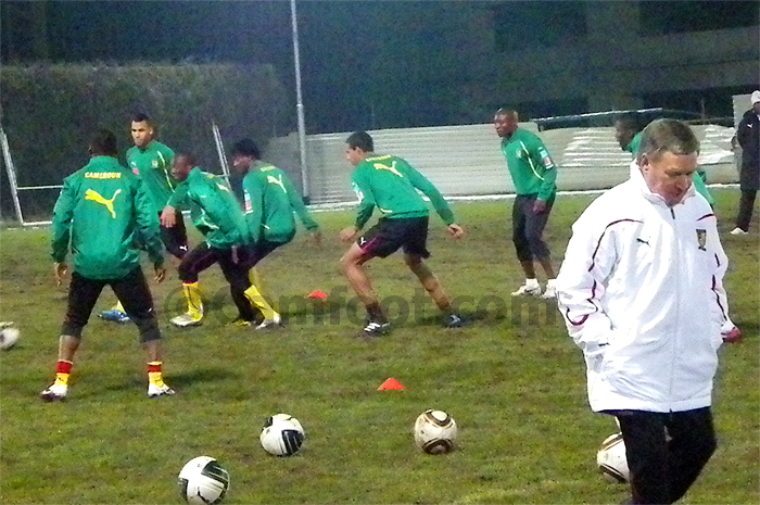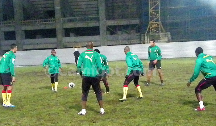 C’est par la prière que la séance a commencé. Xabier Clemente, préparateur physique et fils de l’autre, a ensuite pris le relais pour 15 minutes d’exercice physique. Après plusieurs tours du stade, il soumettra les joueurs de l’équipe nationale à plusieurs exercices sans ballons. Il enchaînera en scindant le groupe en deux pour des basiques avec ballon sur chaque moitié de terrain. Jacques Songo’o, l’entraineur des gardiens de but, va se contenter de travailler avec le portier du FC Nantes Guy Roland N’dY Assembé en l’absence de Idriss Carlos Kameni blessé.