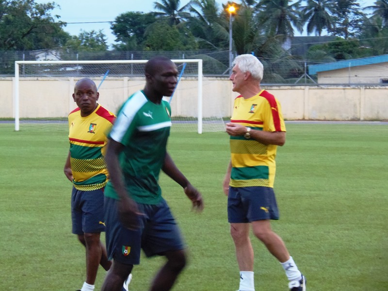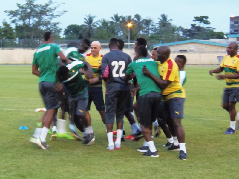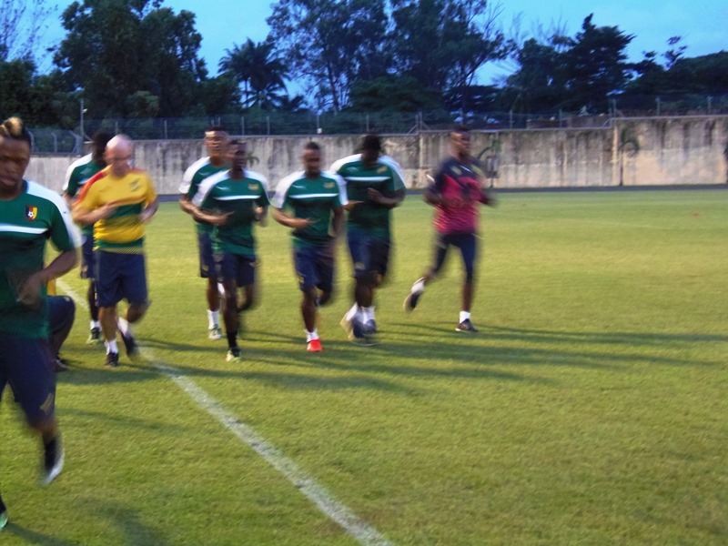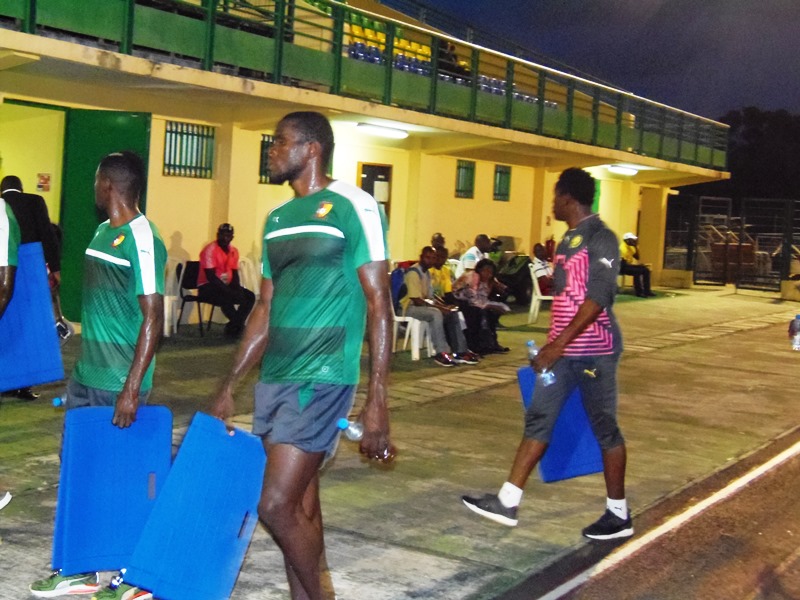 Au lendemain du match nul concédé samedi (1-1) face aux Etalons, les Lions Indomptables se sont entraînés ce dimanche soir au stade de l’INJS de Libreville. Si les titulaires d’hier ont eu une longue séance de décrassage avec le préparateur physique pendant que les autres ont travaillé avec l’entraîneur principal, Jacques Zoua, Benjamin Moukandjo et Christian Bassogog n’y ont pas pris part.