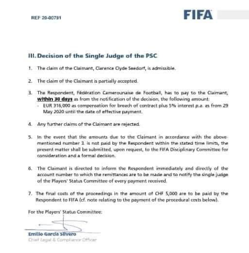 Ainsi en a décidé la FIFA. Ayant porté sa cause devant les instances de la FIFA, le mythique Clarence Seedorf a obtenu gain de cause pour avoir perdu son poste de sélectionneur du Cameroun. En conséquence, la fédération est sommée de le dédommager à hauteur de 207 millions de FCFA, soit l’équivalent de 316.000 €. Le règne de ce célèbre joueur a été des plus court à la tête de la sélection nationale. Sans véritablement avoir pris le temps de connaître l’ensemble des joueurs dont il avait la charge de sélectionner, les sélections étaient contrôlées par un petit groupe d’individus qui faisaient passer leurs intérêts au dessus de ceux des Lions Indomptables.