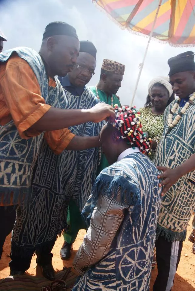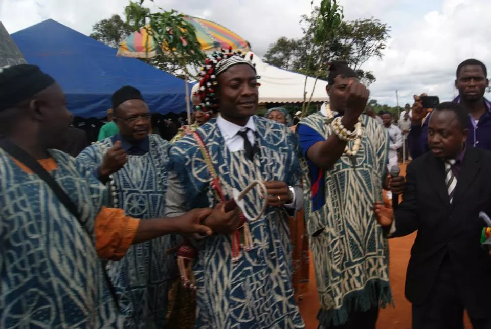 Libre comme tous les autres joueurs de la sélection nationale fanion de football du Cameroun depuis lundi, Achille Wébo, de retour au Cameroun pour la dernière phase de la préparation de la Coupe du monde de Brésil 2014, a mis à profit son instant de liberté pour aller se ressourcer au village. L’attaquant de Fenerbhaçe a été aperçu ce mercredi à Bangoua, son village natal où aurait reçu la « bénédiction » de ses aïeuls en marge de sa participation avec les Lions Indomptables au Mondial. Il a même été fait notable par les Chefs traditionnels du département du Ndé. Son nom de baptême : «Memba Sobdjui» qui signifie littéralement : «celui qui tue la panthère».