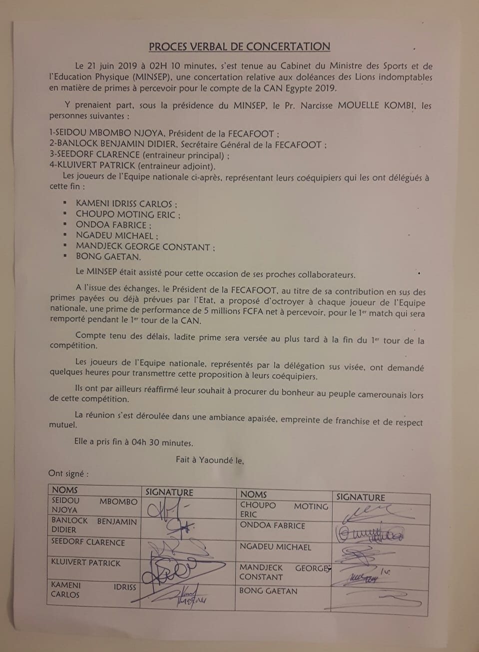 Une autre réunion s’est d’ailleurs tenue en pleine nuit après que Paul Biya ait donné son accord pour une petite bonification de la prime. Cinq millions de plus a été ajouté aux 20 millions déjà versés aux joueurs.