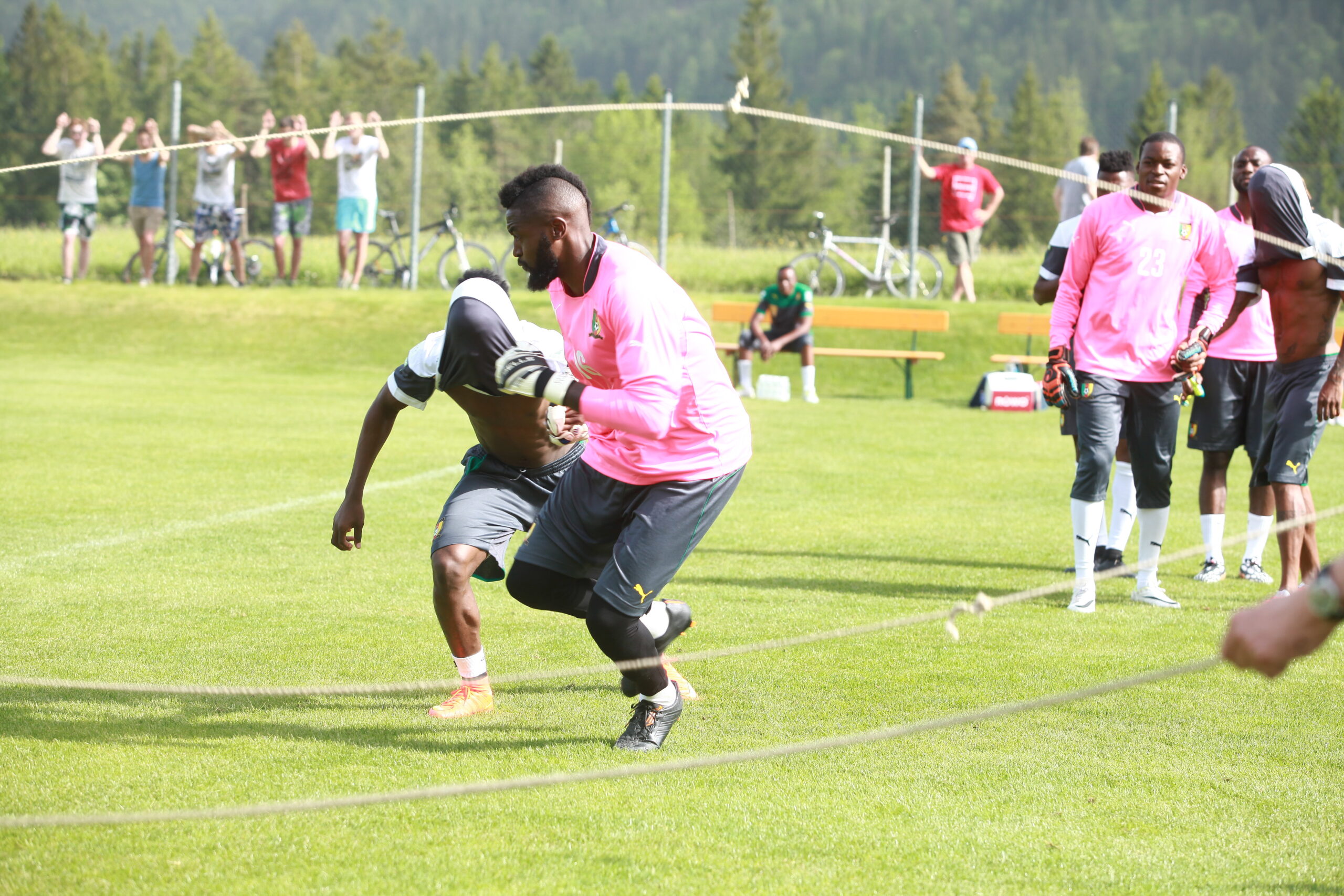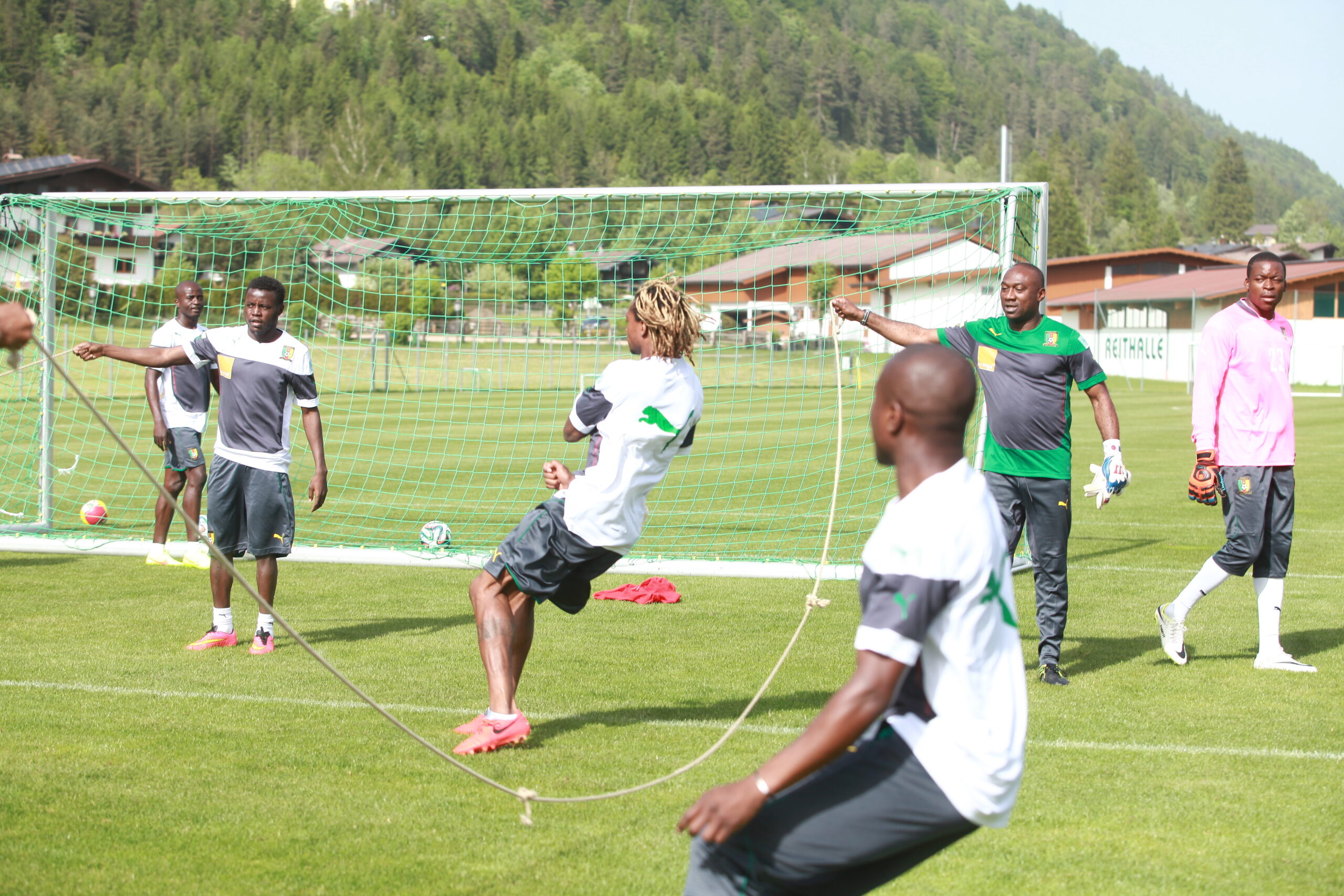 Alors que les Lions continuent leur mise au vert sous les décors feutrés des montagnes autrichiennes, l’on ne peut oublier le rendez-vous raté de 2010. Une autre époque, répondriez-vous. Sous Paul Le Guen, le Cameroun a aussi préparé sa coupe du monde africaine dans ce pays paisible. Les images étaient magnifiques, le décor idyllique. Mais de l’intérieur couvait une révolution… une révolution de palais. Clanisme, discussions sur les primes, braquage contre les autorités, menaces de grève. Autriche 2010, Autriche 2014… Le destin sera t-il différent? Le jeudi des Lions Indomptables… en images…