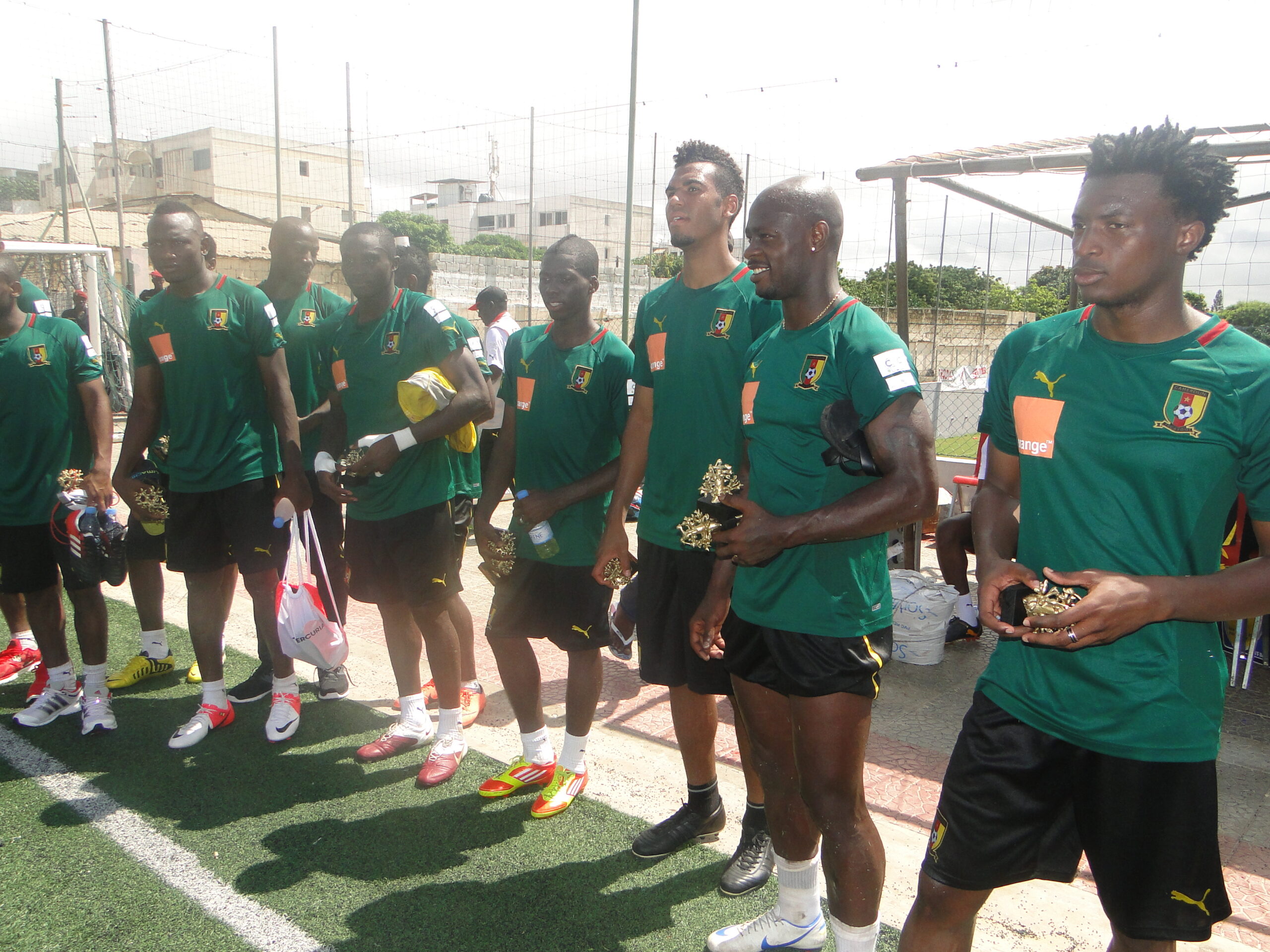 La deuxième séance d’entraînement des Lions en terre sénégalaise a eu lieu mardi après midi au complexe Sacré Coeur. Comme annoncé, avant la séance, les Camerounais ont participé avec leurs homologues sénégalais à une cérémonie de soutien aux victimes des innondations qui ont frappé le Sénégal récemment.