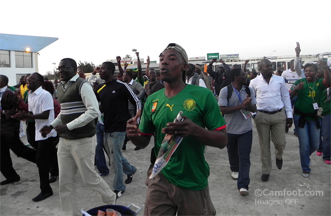 Dans le hall de l’aérogare, et à l’extérieur, plusieurs centaines de supporters camerounais et autres curieux, avaient pris d’assaut les lieux pour accueillir, dans une ambiance survoltée, Samuel Eto’o et ses coéquipiers. Des groupes de danse organisés ou spontanés se déchainaient, des cris, des youyous et autres signes, qui pour leur souhaiter la bienvenue, qui pour encourager ces footballeurs du pays de Roger Milla dans leur mission commando de ce samedi en 26 au stade Léopold Sédar Senghor de Dakar.