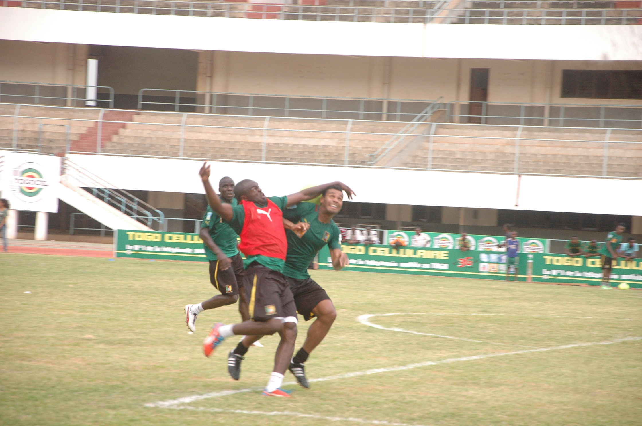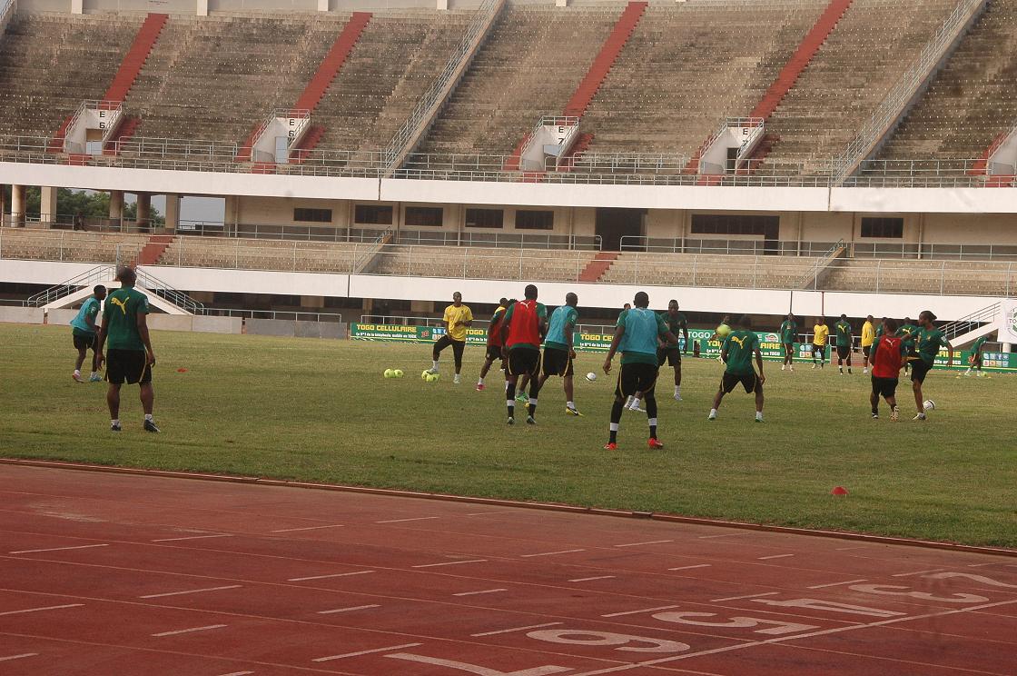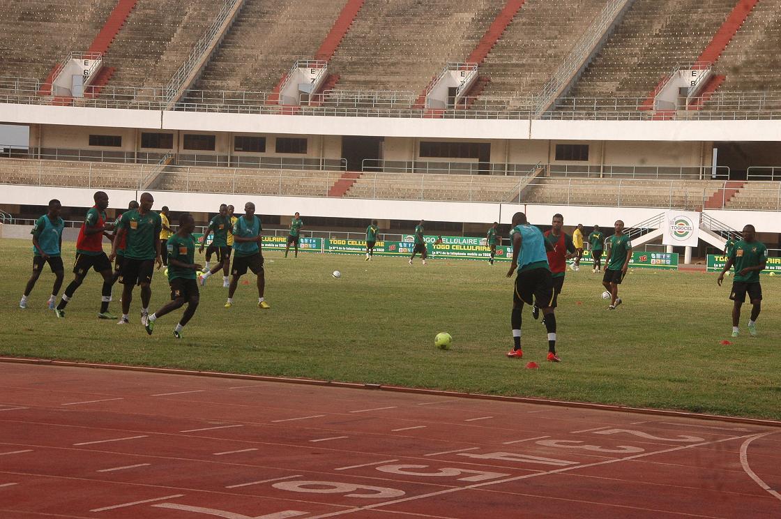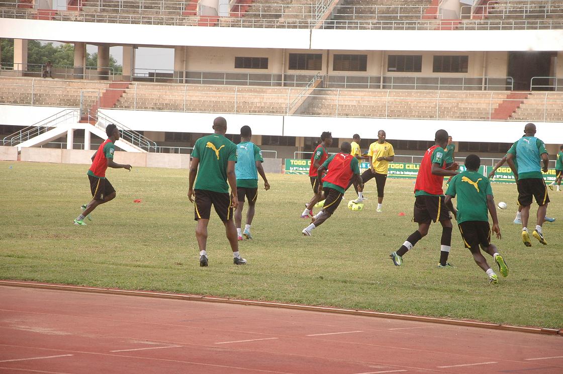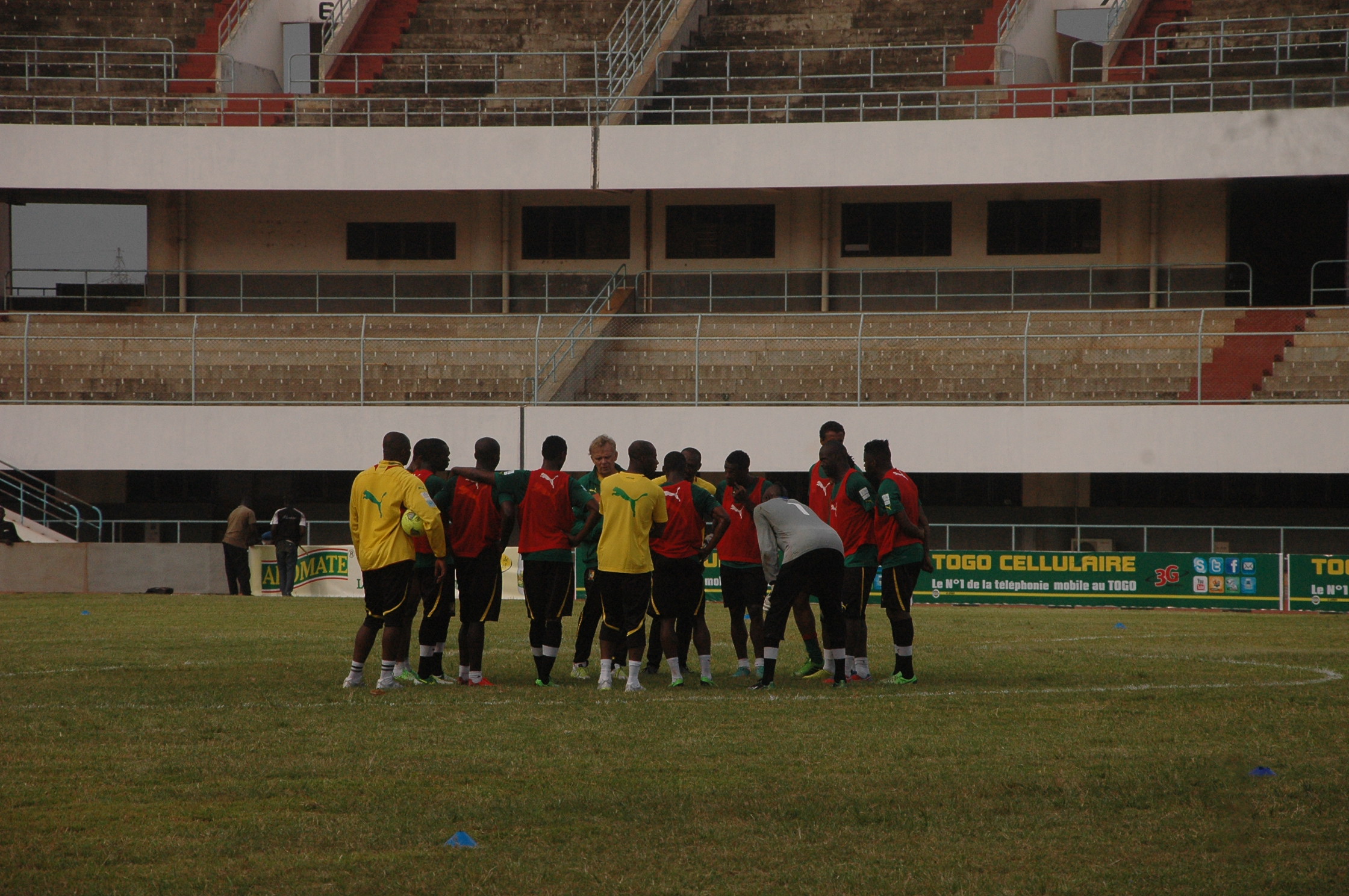 Les Lions indomptables étaient cet après-midi au stade de Kégué pour la traditionnelle reconnaissance de terrain. Une occasion de plus pour Finke de roder sa machine. Sur le banc de touche, Adoum Garoua et Iya Mohammed assis en spectateur. Nous vous proposons les images …