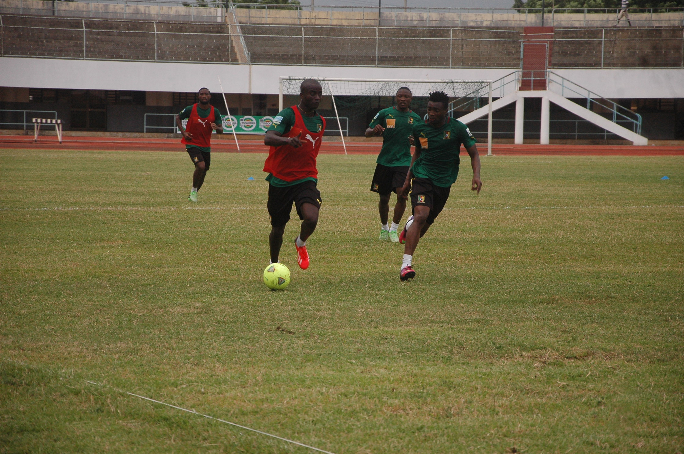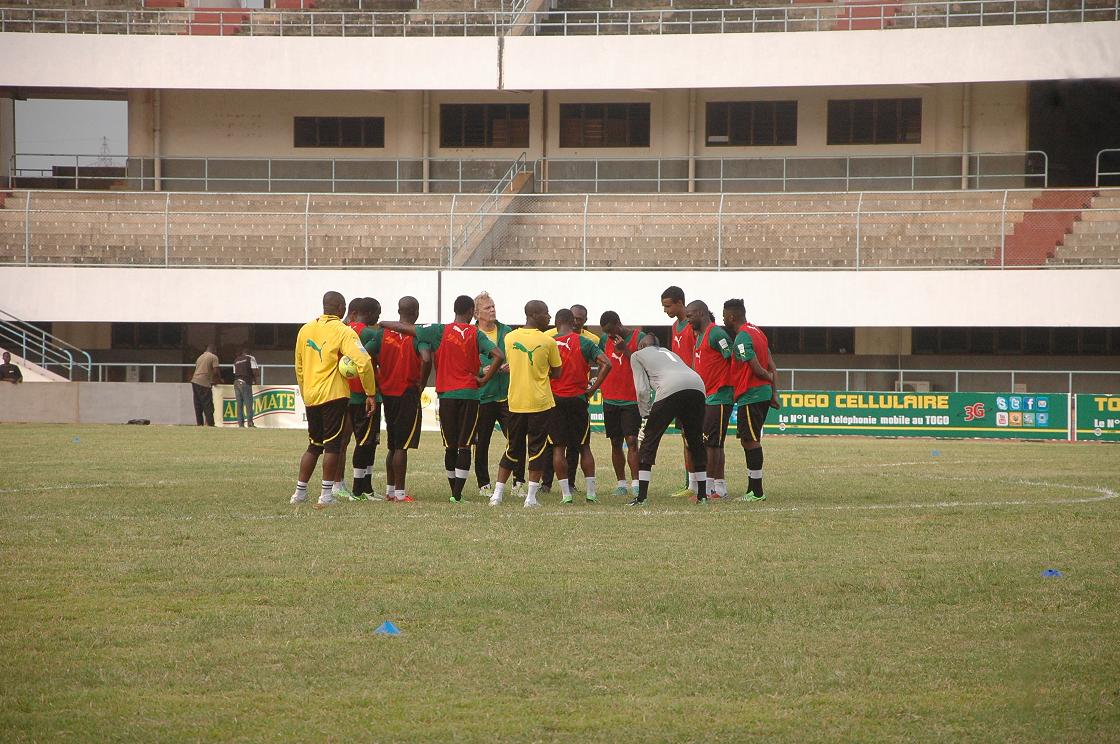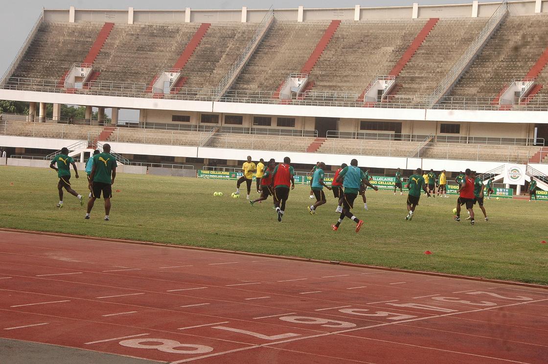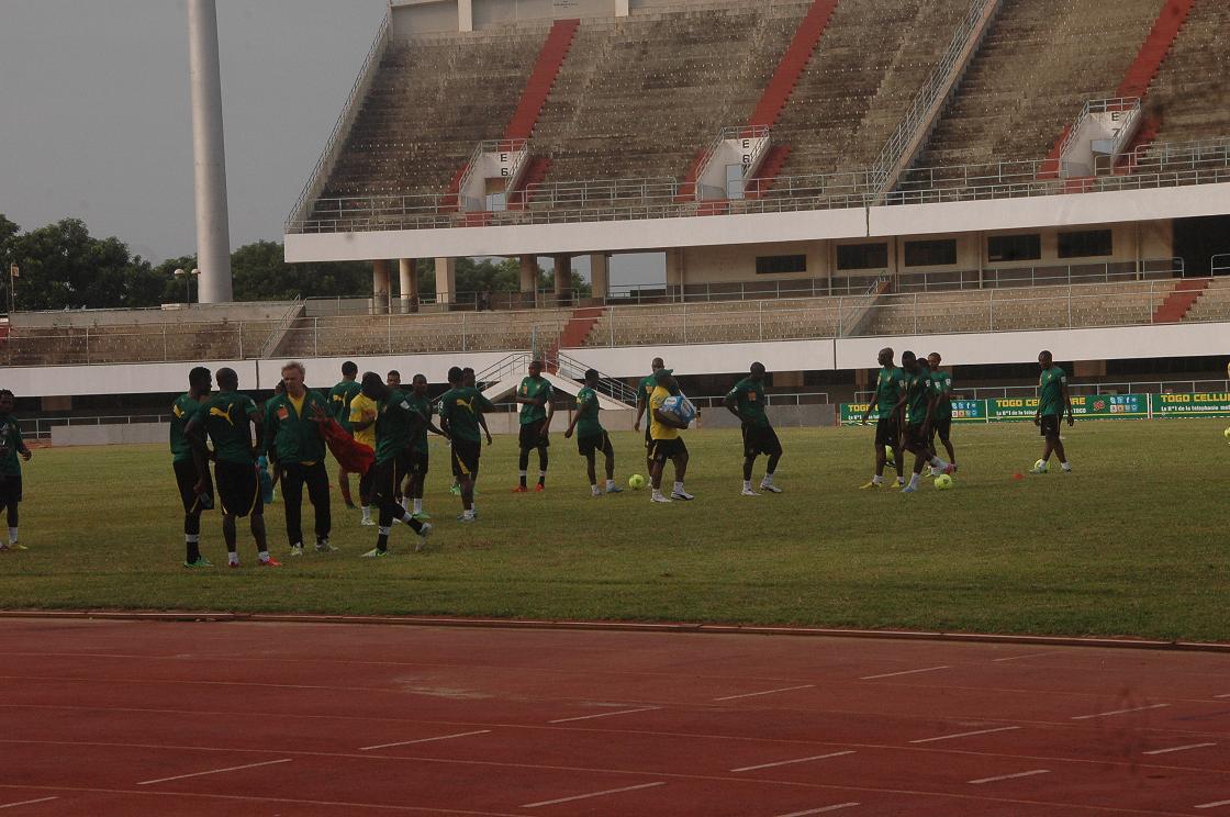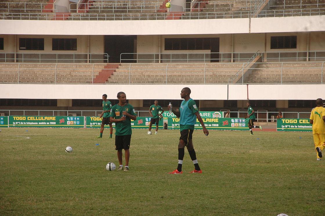 Les Lions indomptables étaient cet après-midi au stade de Kégué pour la traditionnelle reconnaissance de terrain. Une occasion de plus pour Finke de roder sa machine. Sur le banc de touche, Adoum Garoua et Iya Mohammed assis en spectateur. Nous vous proposons les images …