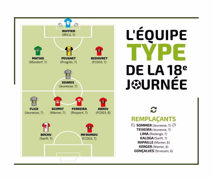 Hadji enfonce le clou à la 61′ de jeu 0-4). Cette 18e journée vire à l’humiliation. Boris Mfoumou s’offre un doublé avant de voir Abreu, double passeur, mettre un terme aux supplices des locaux (0-6) Avec cette 13e victoire de la saison, Differdange creuse l’écart à la tête du classement avec 43 points désormais. En 17 matchs disputés cette saison, l’ailier droit camerounais a inscrit 4 buts et délivré 4 passes décisives. Il faut d’ailleurs partie de l’équipe type de la 18e journée.