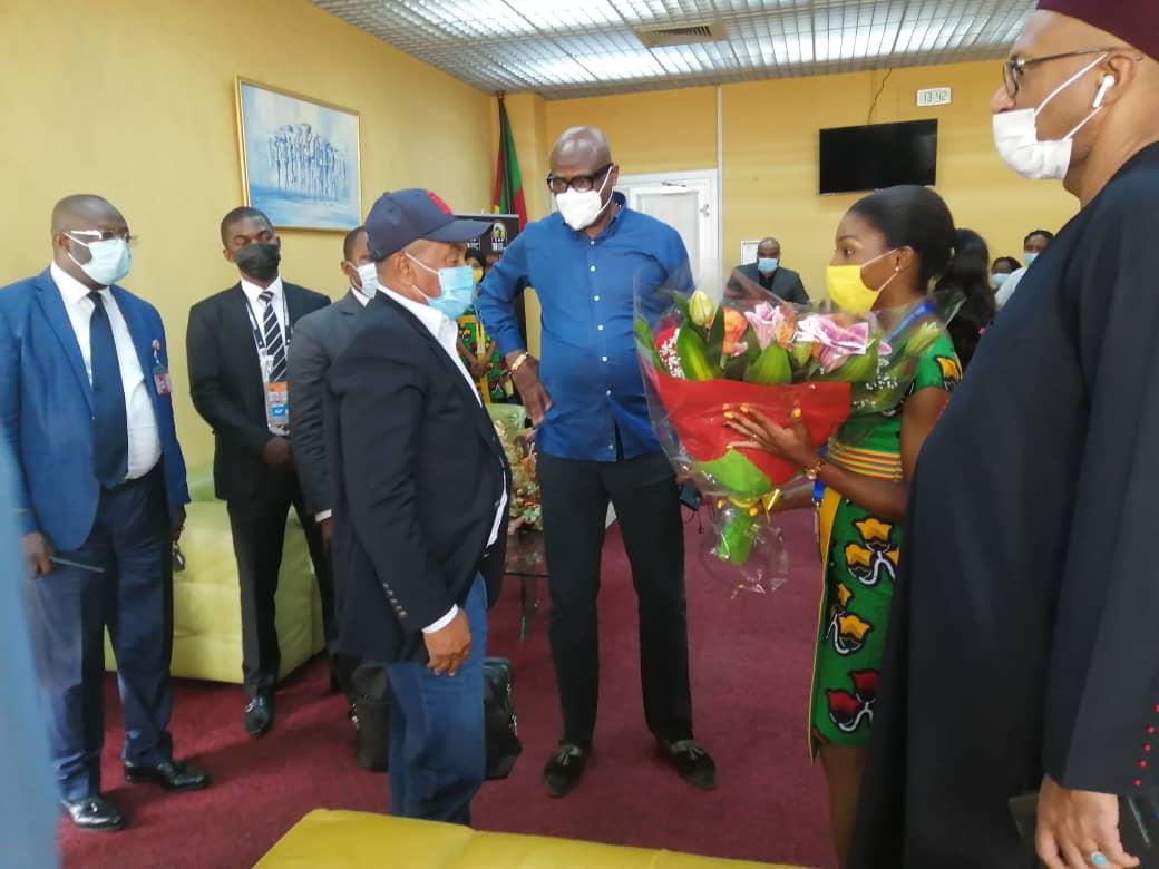 Il a été accueilli à l’aéroport par son premier vice, Constant Omari, et par Seidou Mbombo Njoya.