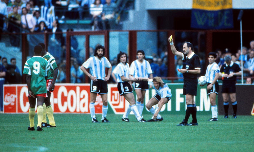 En revisitant cette rencontre sous le prisme du football du 21e siècle, on peut se surprendre à avoir de la sympathie pour le meilleur joueur du temps, Diego Armando Maradona qui s’est retrouvé au sol bien plus souvent qu’à son tour, avec un regard pratiquement stoïque. Le décompte des aggressions affiche un excédent positif pour le Cameroun, soit 28 contre 9. Chacune des quatre actions de Caniggia lui a valu une visite splendide en plein sol, et la contribution spéciale de Benjamin Massing n’avait même pas encore été planifiée.