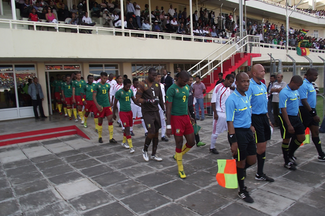 La mauvaise pelouse du stadium Anjalay de Belle Vue n’a pas facilité les choses aux Lions indomptables qui sont rentrés timidement dans la partie. Comme annoncé, Javier Clemente Lazaro, le sélectionneur national a démarré la partie par un système 4-4-2 en insistant sur l’animation qui vient des côtés. C’est pourquoi d’entrée de jeu, Henri Bedimo et Marcel Ndjeng ont été très sollicités. Malheureusement pour l’équipe du Cameroun, le passage par les côtés n’a pas porté les fruits pendant la moitié de la première manche. Les centres de Bedimo manquaient souvent de précision et parfois personne ne se trouvait à la réception.