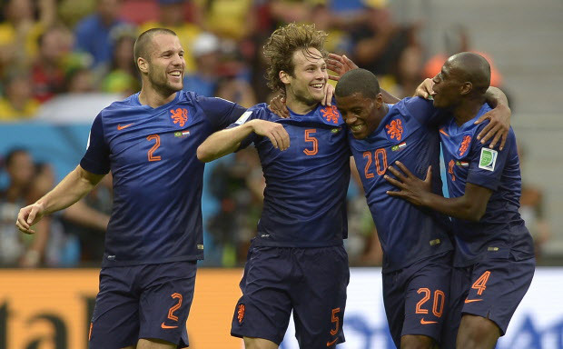 - Pays-Bas : Cillessen – de Vrij, Vlaar, Martins Indi – Kuyt, Clasie (Veltman, 90e), Wijnaldum, Sneijder, Blind (Janmaat, 70e) – Robben, van Persie. Entraîneur : Luis Van Gaal