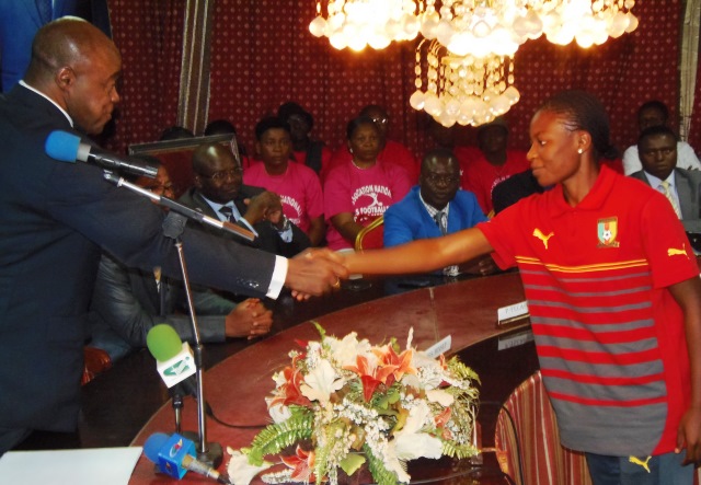 C’est debout, tel un général des forces armées et avec un ton martial, que Pierre Ismaël Bidoung Mkpatt s’est adressé ce mercredi aux joueuses de la sélection nationale des moins de 17 ans. Une posture debout, choisie expressément par le ministre des Sports et de l’éducation physique (Minsep), pour « rendre hommage » à ces joueuses talentueuses grâce à qui, le Cameroun va disputer dès le 30 septembre en Jordanie, sa première Coupe du monde de football féminin U17. Une qualification historique obtenue par ces filles qui ont « su mettre en exergue le Fighting spirit reconnu aux athlètes camerounais », avoue Pierre Ismaël Bidoung Mkpatt.