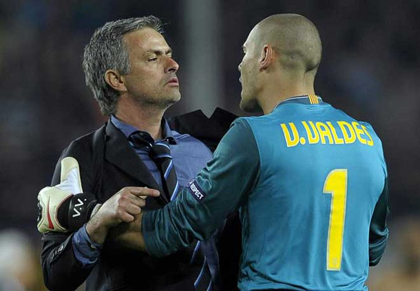 Fou de joie suite à la qualification de son Inter Milan pour la finale de la C1, José Mourinho s’est un peu «chauffé» avec Victor Valdés qu’il a croisé sur le chemin qui le menait vers les supporters italiens.