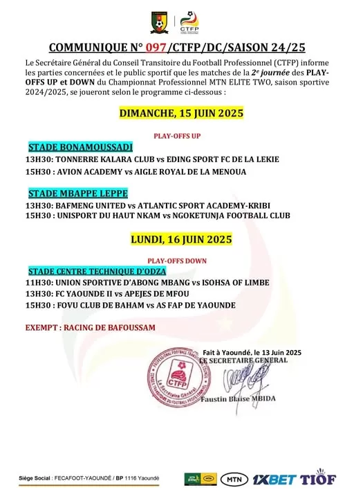La bataille pour la montée en Mtn Elite One sera rude sous le ciel chaud de la ville de Douala. La deuxième journée est programmée pour ce dimanche 15 juin dans la capitale économique. En effet, le public a droit à quatre matchs au stade Bonamoussadi et au stade Mbappe Leppe. Dès 13H30 au stade de Bonamoussadi, Tonnerre kalara club (TKC) de Yaoundé joue gros face à Eding sport de la Lekié. Lors de la deuxième rencontre, l’une des finales de cette suivre va tenir le public en haleine.