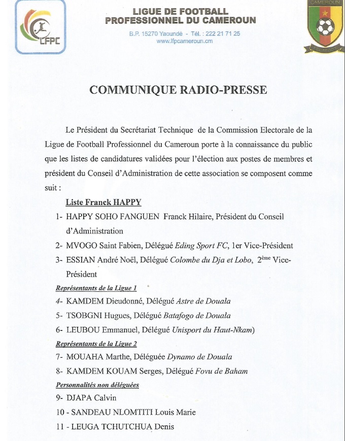 Ainsi pour le candidat de la « Cause », slogan fort de sa campagne, tout est plié pour le vieux militaire. Franck Happi croit détenir la solution miracle pour sortir le football professionnel camerounais de son marasme. Son vision semble simple, amener les plus gros sponsors à soutenir la Lfpc et les clubs, arrêter de diluer la qualité en ramenant le nombre de club de 18 à 12.