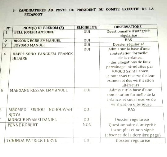 Empêtrée dans ses propres turpitudes, le Comité de Normalisation a décidé d’approuver la presque totalité des candidats au poste de président de la Fécafoot. Au départ pourtant, seul Seidou Mbombo Njoya avait reçu un blanc-seing. Ensuite, Joseph Antoine Bell avait été blanchi. Suite à la levée de boucliers des autres candidats qui, voyant la date et l’heure butoirs arriver, ont énergiquement contesté la planification des forfaits, on valide tout le troupeau avec des conditions…