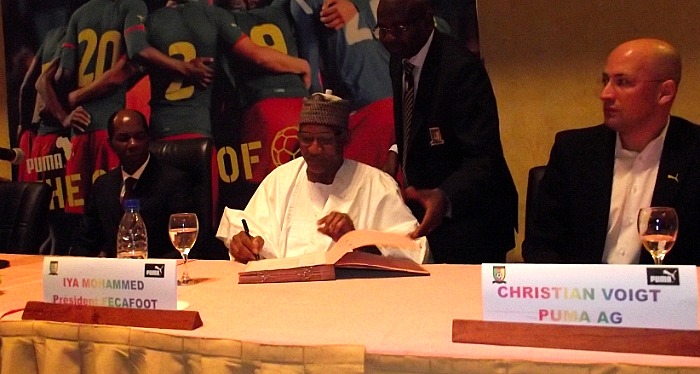 La signature de ce nouveau contrat a eu lieu ce matin au Yaoundé Hilton Hôtel en présence du ministre des sports et de l’éducation physique Michel Zoah. Ce contrat qui s’étale sur huit ans est estimé à 10 milliards de frs CFA. La firme Allemande, en plus de l’argent liquide, promet de donner des ballons aux centres de formation à travers le territoire national.