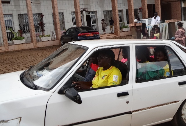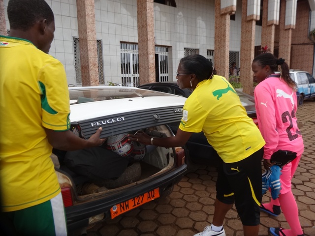 Pour trois véhicules, elles n’ont pas pu toutes embarquer et s’activaient déjà à appeler un taxi, comme à l’accoutumée. C’est alors qu’une des kinés est arrivée avec son véhicule. Après la sortie de leurs chambres en effet, Enow Ngachu les a retrouvées dans la cour de l’hôtel avant d’ordonner la répartition. « Mettez-vous par cinq ou six par voiture. Essayez de serrer », a-t-il ordonné. Avant d’aller déverrouiller la sienne pour la mettre à la à la disposition des joueuses. Elles se sont installées à quatre sur la banquette arrière et deux à la cabine. C’est donc en surcharge qu’elles ont pris la direction du stade Ahmadou Ahidjo.