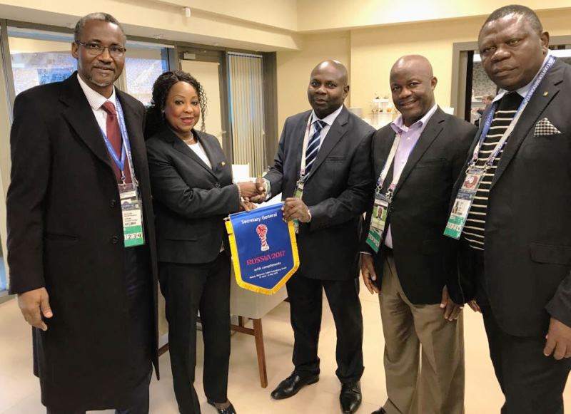 Constitué du président, Tombi A Roko et de trois de ses vice-présidents à savoir Alioum Alhadji, Pierre Batamack et l’honorable Luc Koa, le Comité exécutif de la Fédération camerounaise de football (Fécafoot) a rencontré la secrétaire générale de la Fifa, Fatma Samoura. En toute convivialité, les deux parties ont eu des échanges chaleureux. La secrétaire générale de l’instance mondiale du football a même remis à ses invités, un fanion de la Coupe des Confédérations, Russie 2017, avec tous les compliments de la Fédération internationale de football association.