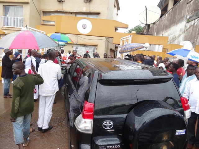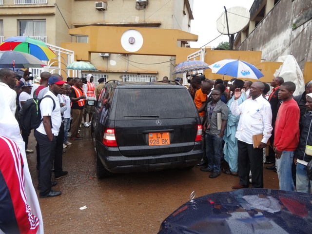 Seuls Etienne Tamo et Robert Despays sont restés au siège de la Fécafoot. Avant l’arrivée du Lieutenant-Colonel Bomba, pour ordonner l’ouverture du grand portail aux vigiles, Etienne Tamo et Robert Despays sont venus dire à John Ndeh, assis dans son véhicule, que seuls les élus peuvent entrer et que les autres accompagnateurs ne sont que « des badauds qui n’ont pas de place à la Fécafoot » (Parlant des Eugène Ekéké, Lucien Mettomo, Emmanuel Mvé et les avocats). Niet. « Tout le monde doit entrer », a rétorqué Essomba Eyenga. L’officier supérieur de la gendarmerie est venu ordonner d’ouvrir le portail. Et quelques gros bras portant les chasubles estampillées « Fécafoot » ont tenté de résister avant de se raviser très vite.