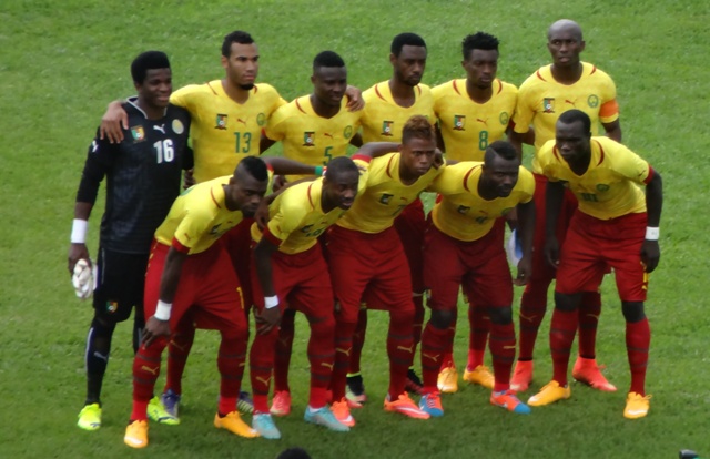 Mesdames, messieurs, bienvenue ici au stade Ahmadou Ahidjo pour cette rencontre Sierra leone – Cameroun, comptant pour la 3ème journée des éliminatoires de la Can 2015 dans le groupe D. Le Cameroun jouera en maillot jaune, short rouge et bas rouge. Les sierra leonais sont en maillot et short vert, et en bas bleu.