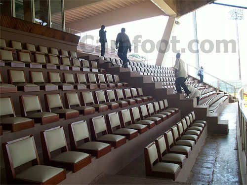 Dans le premier cas, il s’est agit de la réfection de la pelouse, la construction de deux blocs de toilettes, la rénovation de la tribune présidentielle, la pose de nouveaux sièges en bois, le renouvellement des tapis de la loge d’honneur, la réhabilitation de la cabine et de la salle de presse, de l’étanchéité au niveau de la toiture, la pose des pavés tout au tour de l’accès aux gradins inférieurs, et des garde-fous, l’application d’une peinture anti-décapante aux couleurs nationales sur les gradins, les virages, les tribunes A et B et d’honneur…
