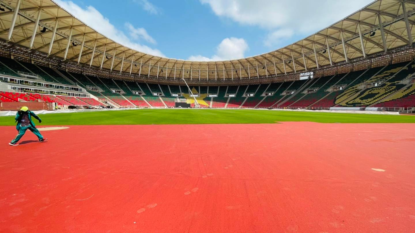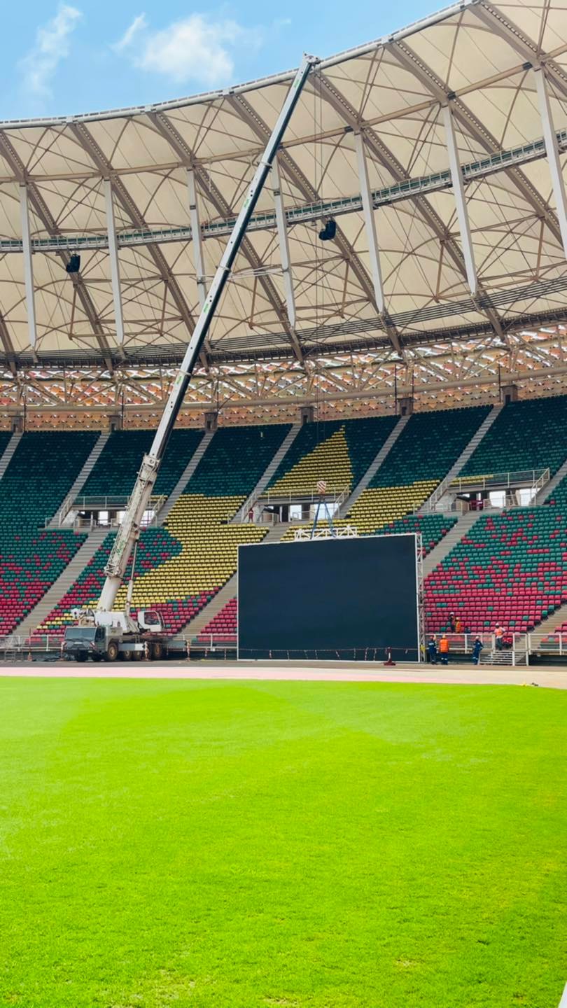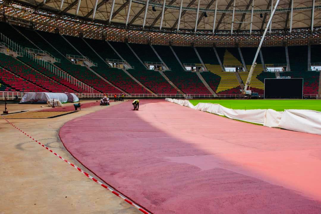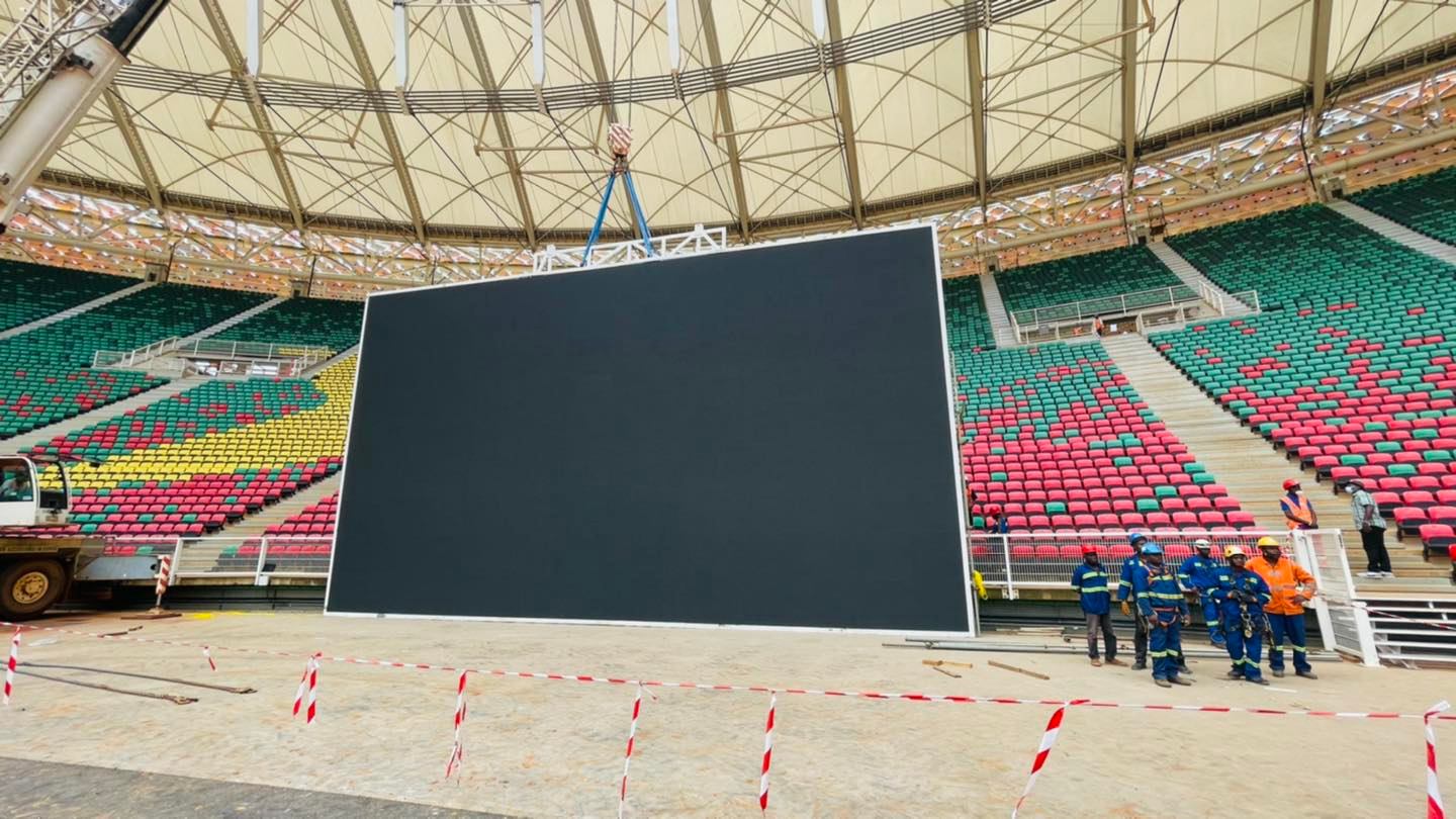 Et comme à son habitude, l’homme est heureux de l’avancée des travaux qui a vu l’installation de deux écrans géants, accrochés à la structure du toit du Stade.