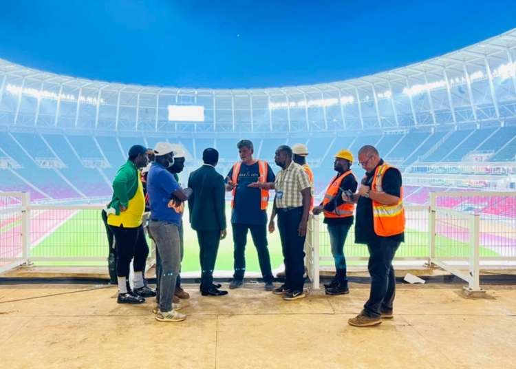 On célèbre à Yaoundé la fin d’une page historique, l’installation d’un des symboles du Stade d’Olembé qui portera ultérieurement le nom du Président Paul Biya. Même si ce fut un parcours de combattant, le finition de ce matériau donne un cachet unique à cette infrastructure. Le ministre des Sports a tenu à célébrer et aussi à offrir un « farotage » aux ouvriers.