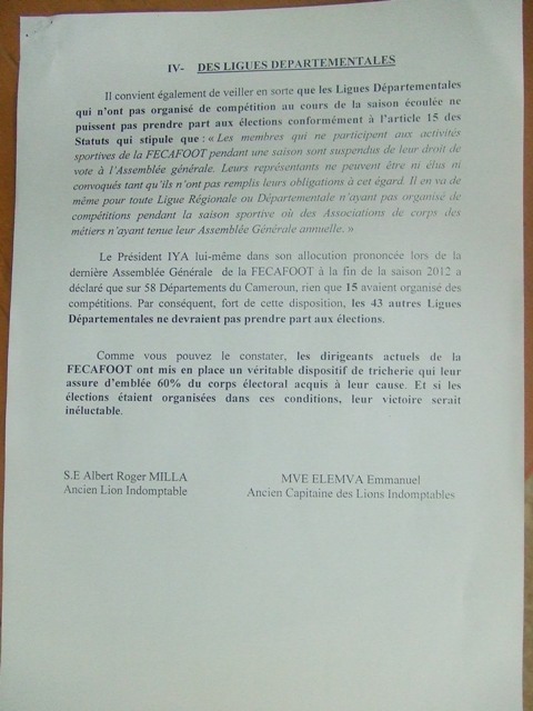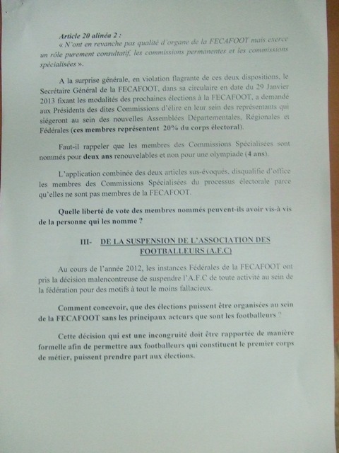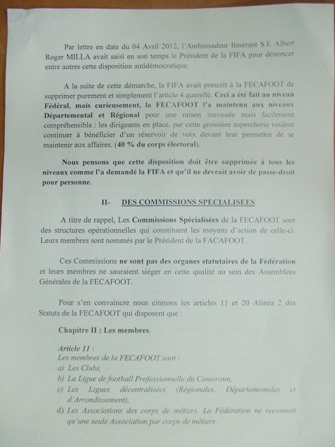 Emmanuel Mvé Elemva, le président de ce Comité, était accompagné sur le panel de S.E. Albert Roger Milla, ambassadeur itinérant, Joseph Antoine Bell, David Mayebi, vice-président de la Fécafoot et président du Syndicat des footballeurs camerounais (Synafoc) et Prosper Nkou Mvondo, le président de Ngaoundéré Fc, qui a gagné le procès au Comité national olympique et sportif du Cameroun contre la Fécafoot au sujet de l’application de la même disposition des statuts.