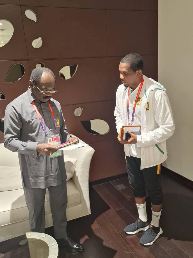 Le Président de la Fécafoot, Samuel Eto’o Fils, a accueilli comme il se doit son ministre de tutelle, Pr Kombi Mouelle. À quelques heures de l’important premier match de la Coupe du Monde 2022 Suisse – Cameroun, il apportait les encouragements de la Nation aux Lions Indomptables. En images…