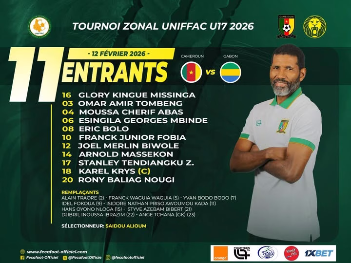 Les Lions U17 affrontent les Panthères du Gabon ce soir au stade Tata Raphaël. C’est dans le cadre de la première journée du tournoi de l’Uniffac 2026. Les poulains de Saidou Alioum veulent bien démarrer la compétition. Pour aller chercher les Gabonais, l’ancien international camerounais a composé avec son meilleur groupe.