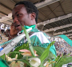 Avant le match de la 10e journée de l’Elite One joué dimanche dernier au stade de la réunification entre l’Union et les Astres de Douala, les coéquipiers de Ngueumaleu ont arboré à l’échauffement un t-shirt blanc confectionné pour l’évènement. A l’arrière, était floqué le dossard 5 de cet ancien capitaine, et à l’avant, on pouvait lire ‘’Merci Ngueumaleu’’. Une haie d’honneur a été constituée pour dire Merci à cet athlète talentueux qui a tout donné au club de New-Bell, et qui a fait toutes les sélections nationales, des cadets aux Lions A’, en passant par les juniors et les espoirs. Ne reste plus qu’une sélection chez les Lions indomptables.