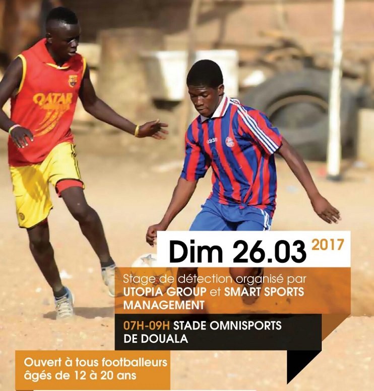 Spécialisées dans la gestion de carrière des sportifs, les agences Utopia Group (Samuel Eto’o fils) et Smart Sports Management organisent ce dimanche 26 mars 2017 au Stade de la réunification de Douala, une séance de détection de jeunes footballeurs.